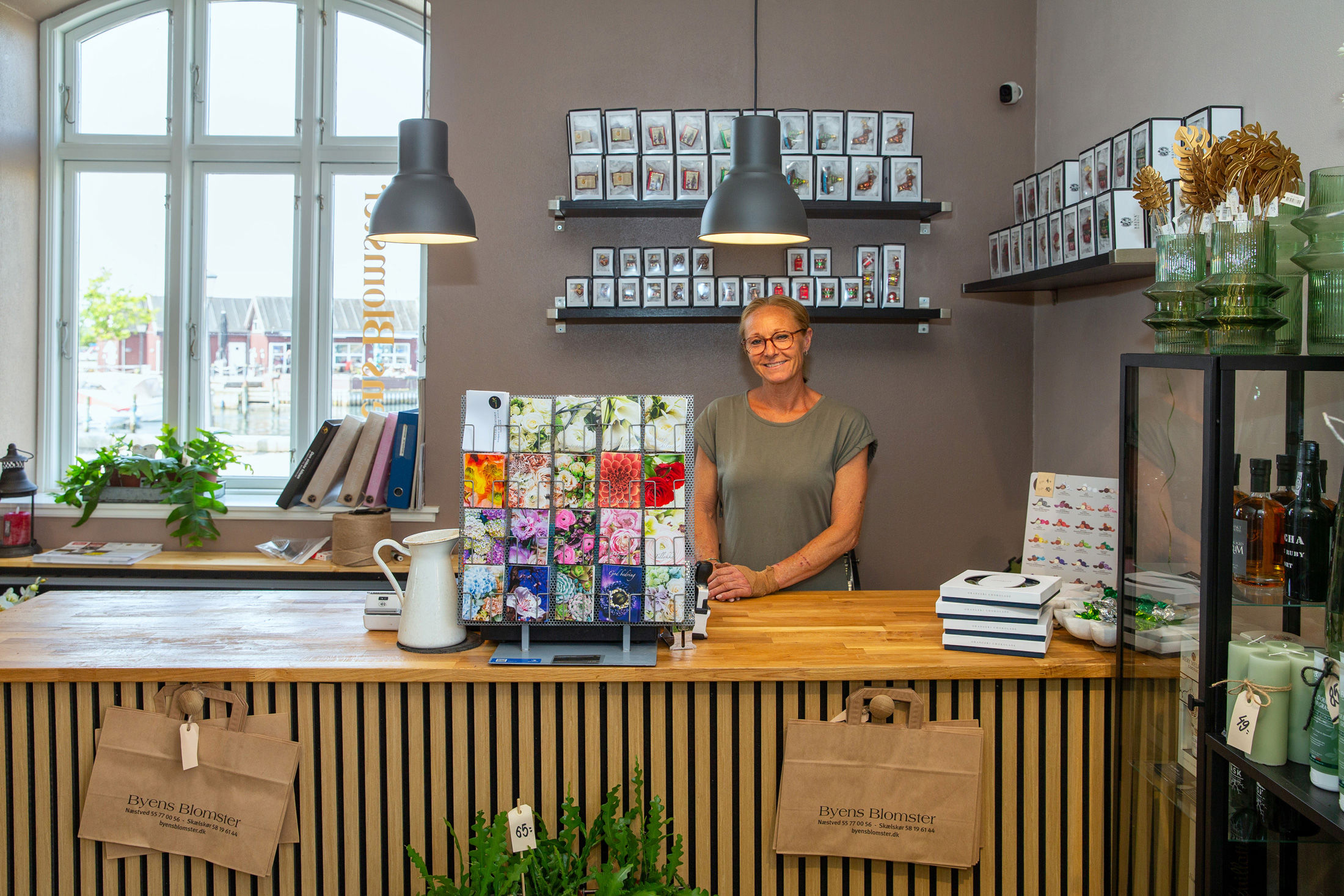 Byens Blomster er en velrenommeret blomster butik med beliggenhed i den gamle toldbod på havnepladsen i Skælskør. Der er p-pladser lige ved døren, hvilket gør det nemt at komme til og fra butikken.